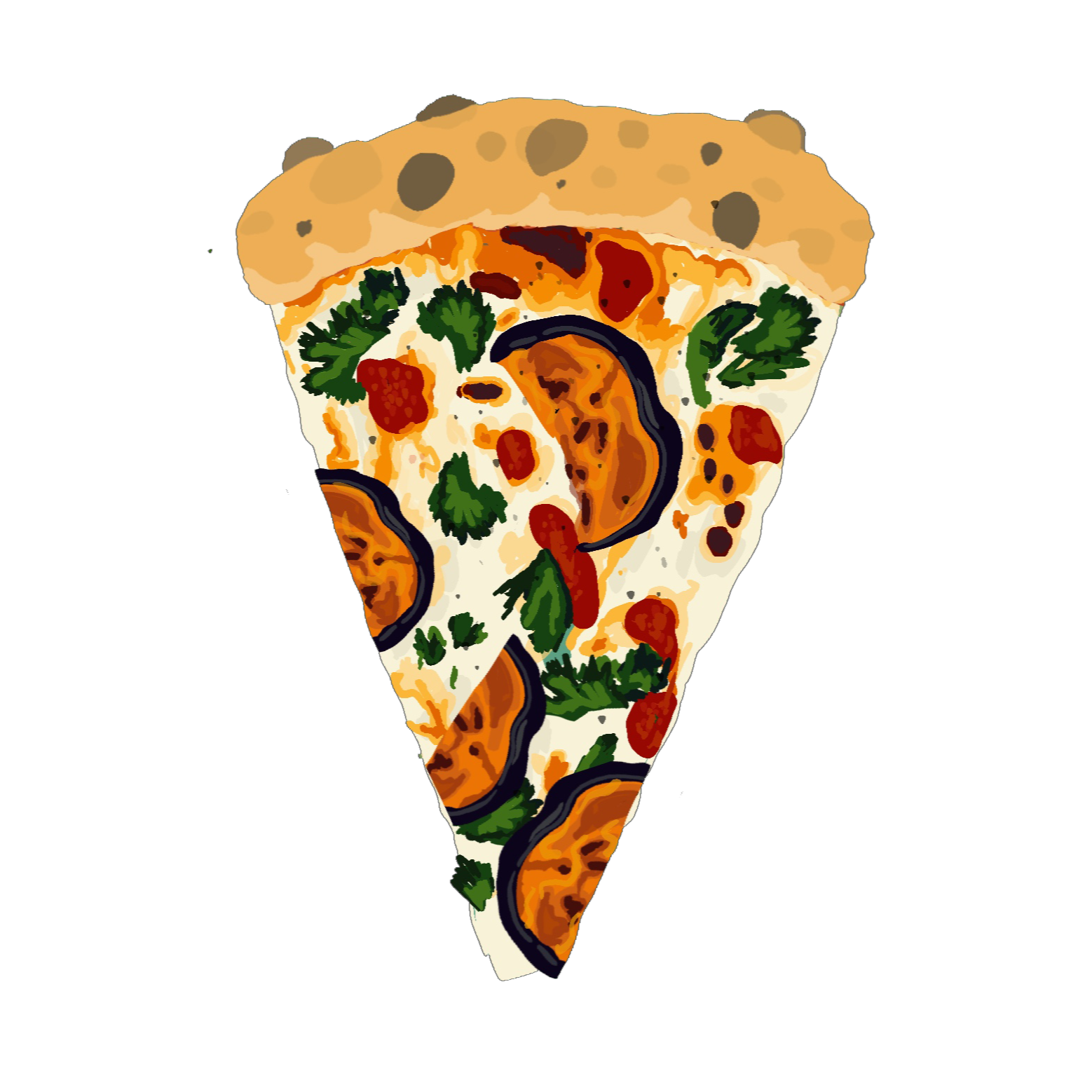 14Roasted Aubergine & Kale (V) Parmesan and Garlic Cream Base, Mozzarella, Roasted Aubergine, Crispy Kale, Sundried Tomato Pesto, Parsley
